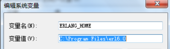 3、安装完成之后,设置ERLang的环境变量,首先建立一个ERL_HOME的变量,如下图所示: