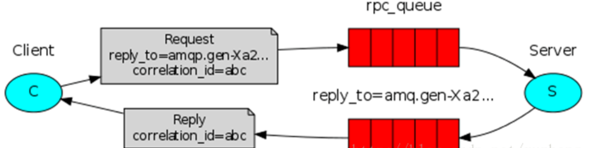 2、一个RPC请求中,客户端发送一个消息具有两个特性:replyTo它包含将要到达的回调队列和correlation_id,这是每个请求的一个固有的值。