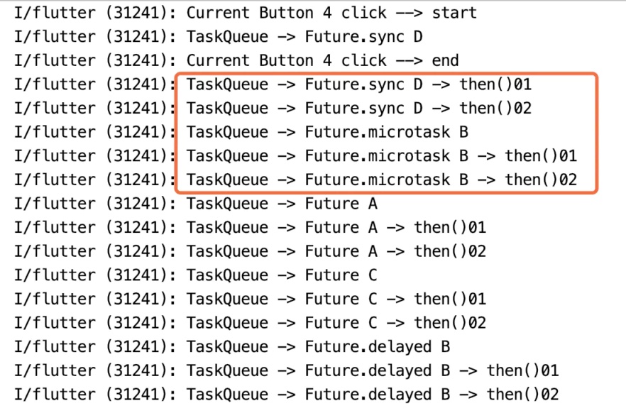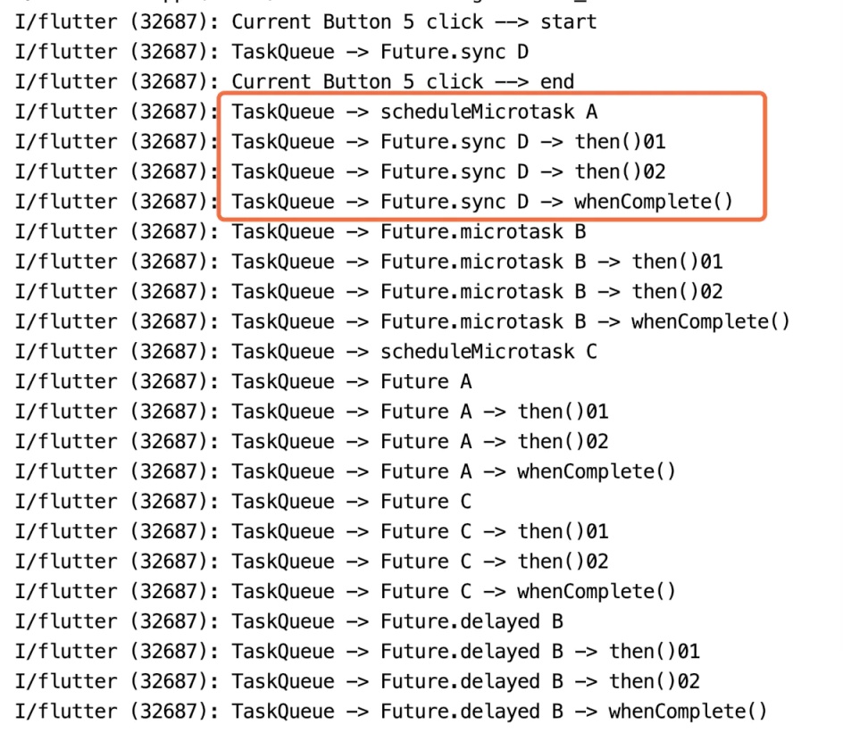 Future.sync(() => print('TaskQueue -> Future.sync D'));