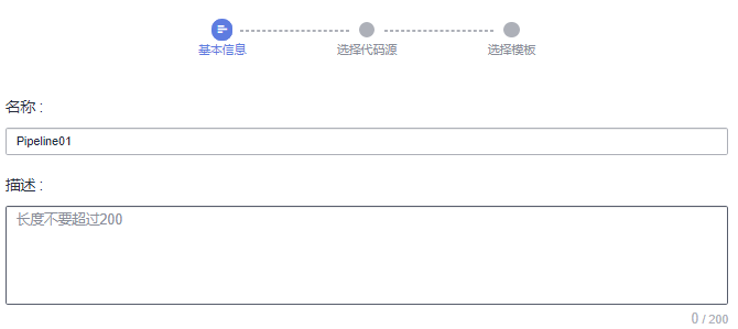 2. 单击右上角“新建流水线”,进入“创建流水线”页面。根据界面提示填写基本信息、选择模板、选择代码源,然后单击“下一步”。