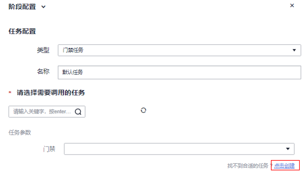 添加质量门禁,选择“门禁任务”类型,然后单击“点击创建”。