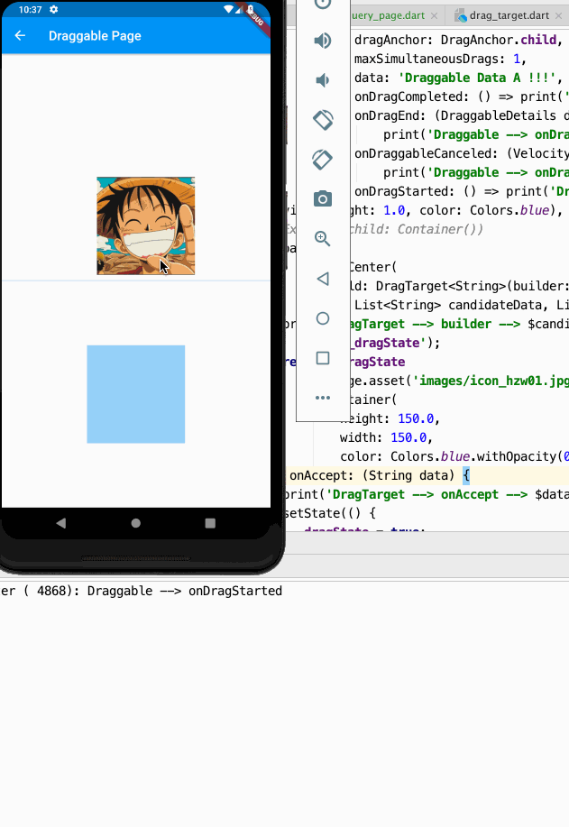 onDragStarted: () => print('Draggable --> onDragStarted'));