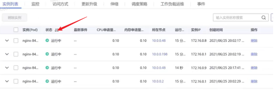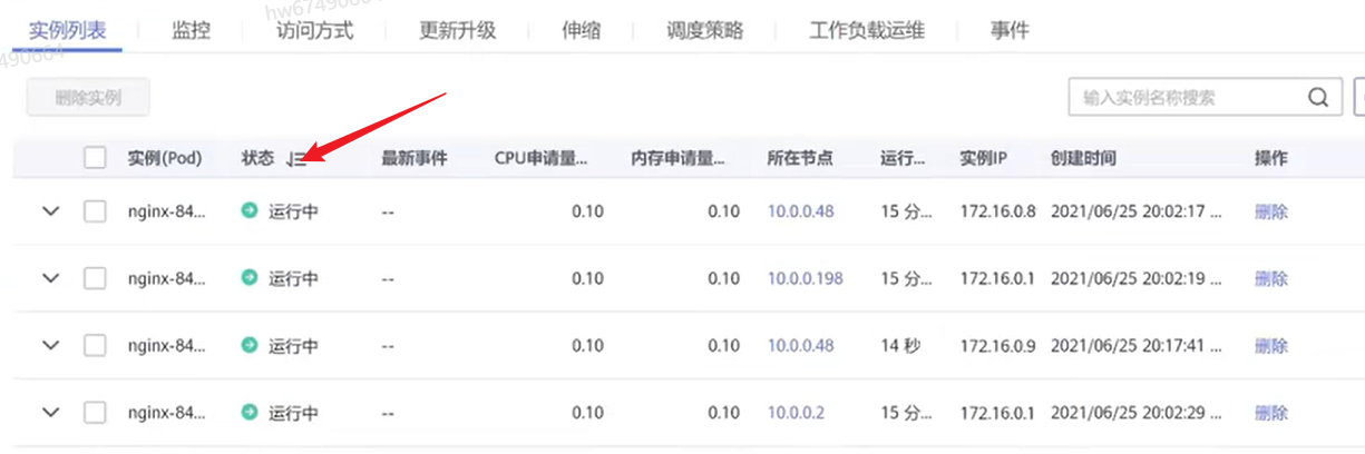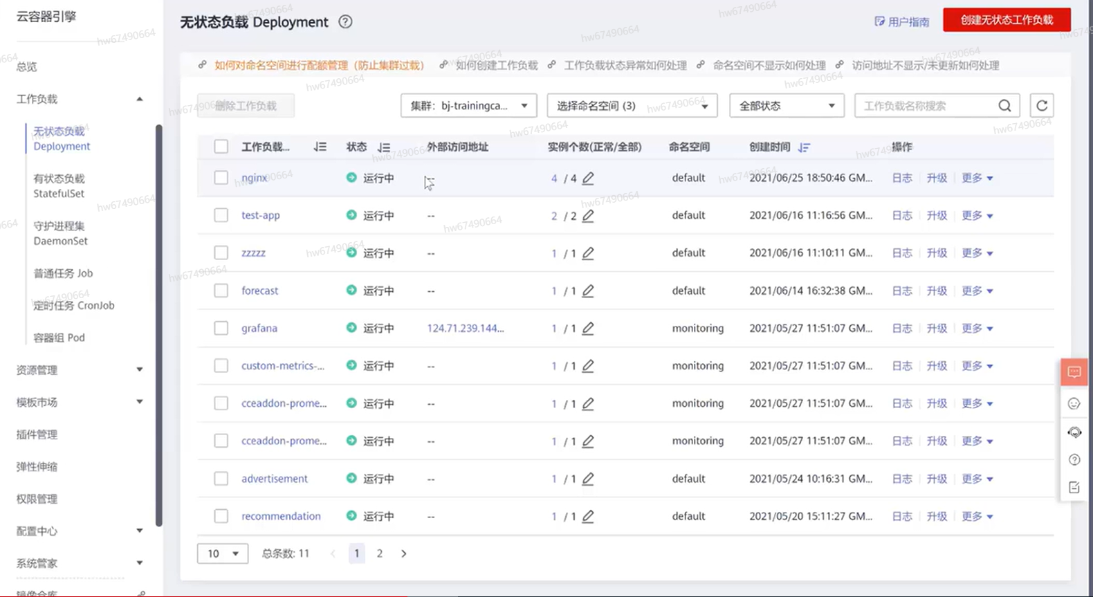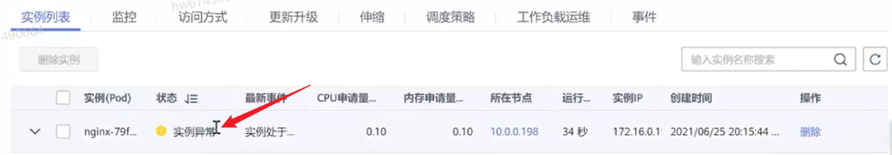 还是通过的那个例子演示下探针检查机制是咋样,回到华为云CCE的操作页面,还是用Deployment的nginx K8S集群为例;