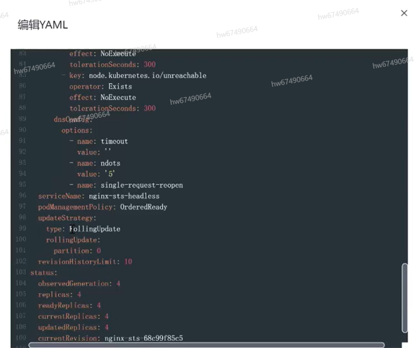 statefulset 和 deployment一样也支持回滚操作,statefulset也保存了历史版本, 和deployment 一样利用spec.revisionHistoryLimit字段设置保存多少个历史版本