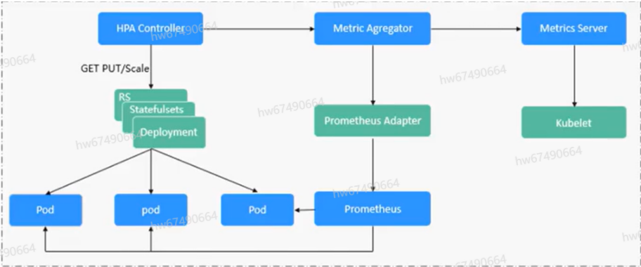 HPA(Horizontal Pod Autoscaler)是用来控制Pod水平伸缩的控制器,HPA周期性检查Pod的度量数据,计算满足HPA资源所配置的目标数值锁需要的样本数量,进行调整目标资源(如Deployment)的replicas字段。