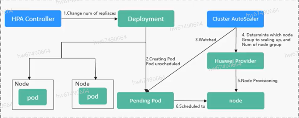 弹性伸缩最主要的就是HPA和CA(Cluster AutoScaling)两种弹性伸缩策略,HPA负责工作负载弹性伸缩,也就是应用蹭饭面的弹性伸缩。