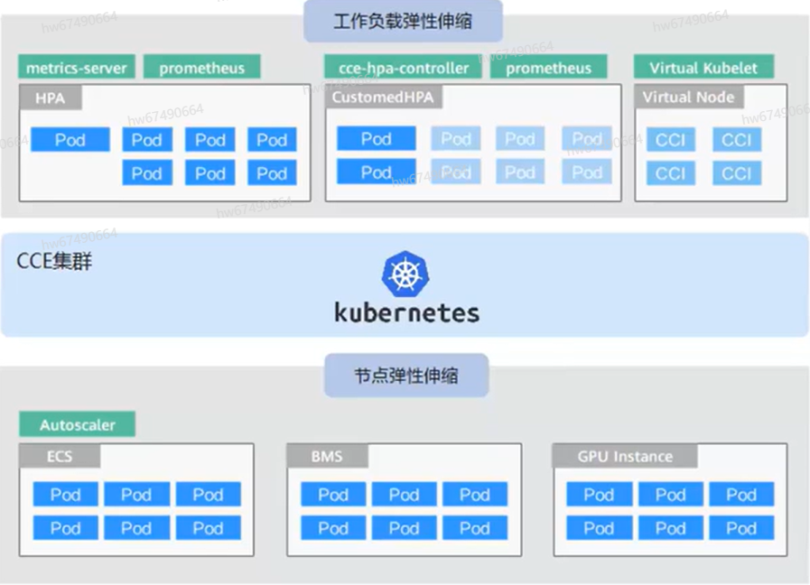 节点弹性伸缩:即资源层弹性,主要是集群的容量规划不满足集群调度容量时,会通过弹出ECS或CCL等资源的方式进行调度容量的补充,CCE容器实例弹性到CCI服务的方法请参见CCE容器实例弹性伸缩到CCI服务。