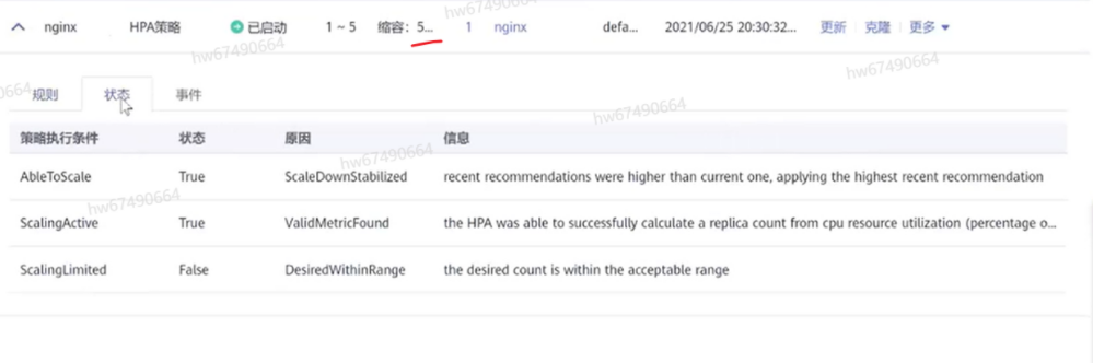 6 弹性伸缩是根据业务需求和策略,经济地自动调整弹性计算资源的服务;HPA(Horizontal Pod Autoscaler)是用来控制Pod水平伸缩的控制器,HPA周期性检查Pod的度量数据,计算满足HPA资源所配置的目标数值锁需要的样本数量,进行调整目标资源(如Deployment)的replicas字段。