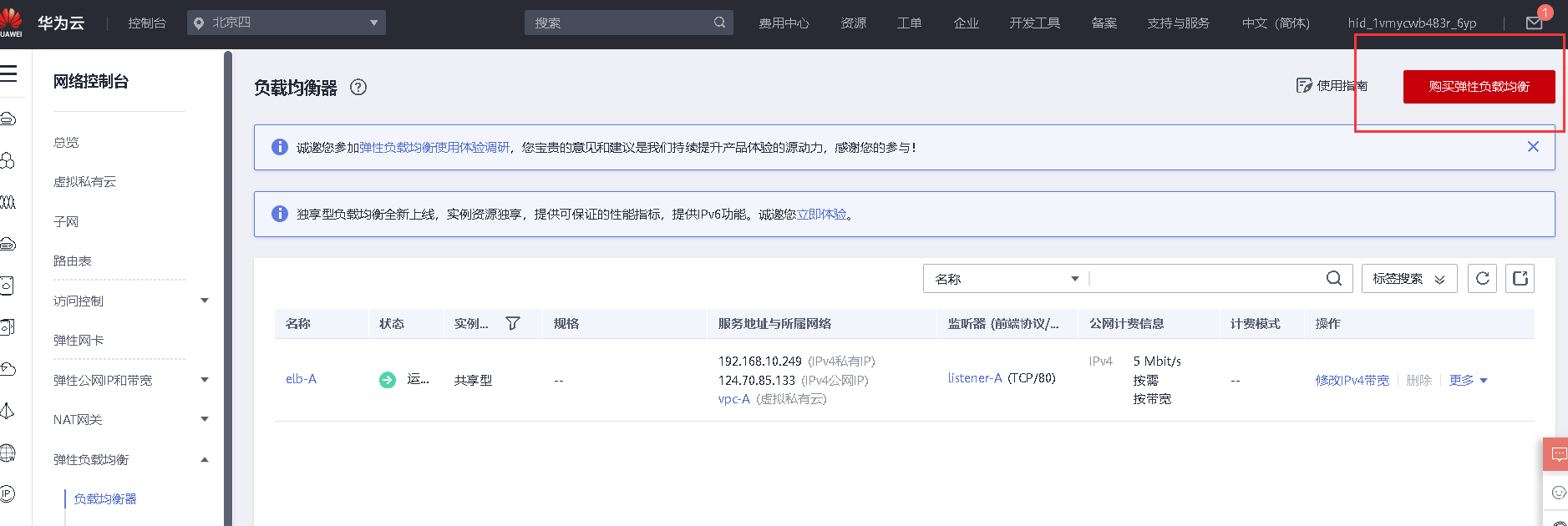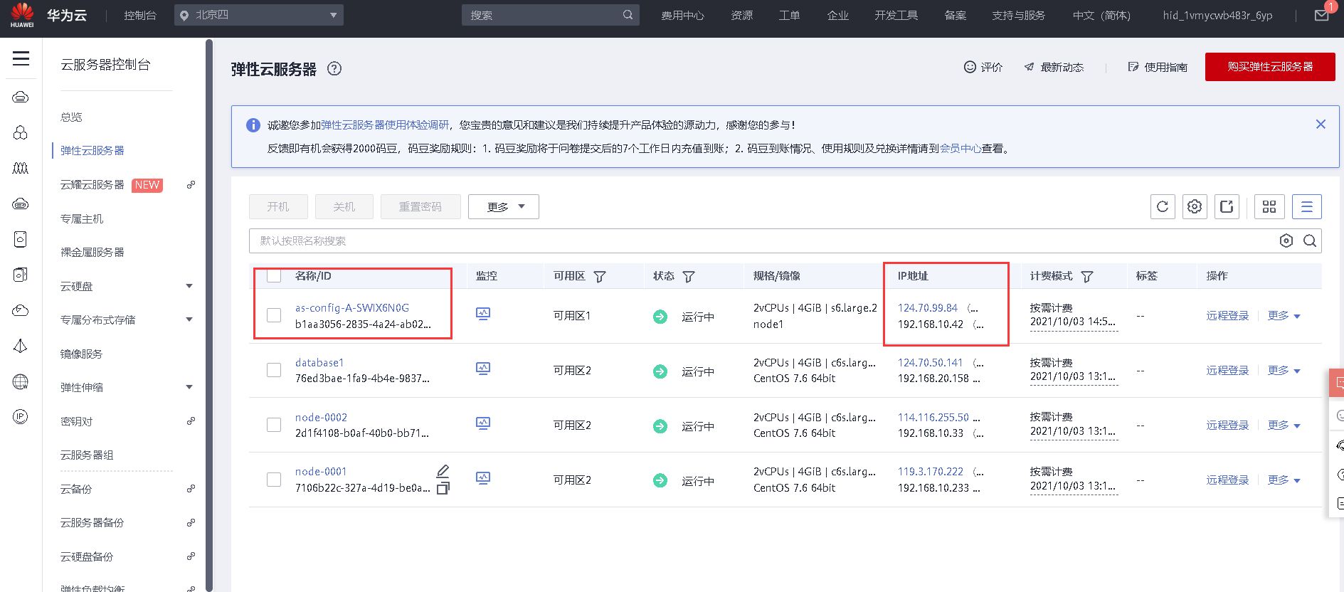 (注意弹性公网IP配额)