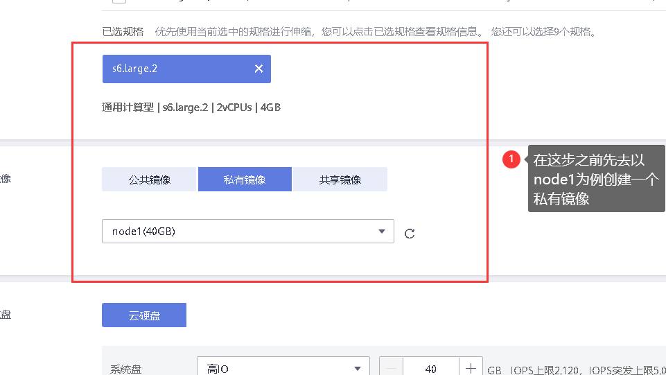 2、按照2核CPU、4G内存、40G硬盘创建四台分别名为node1、node2、Database01和redis的云主机。【10分】
