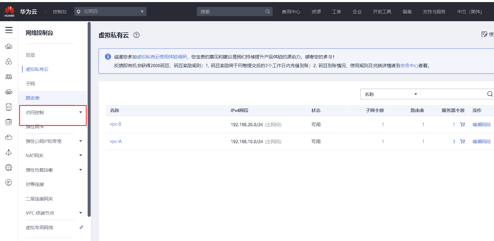 1. 进入网络控制台找到《对等链接》