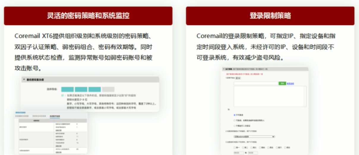 管理员层面采用灵活的密码策略和系统监控,并且对登录采取限制策略,如下图所示: