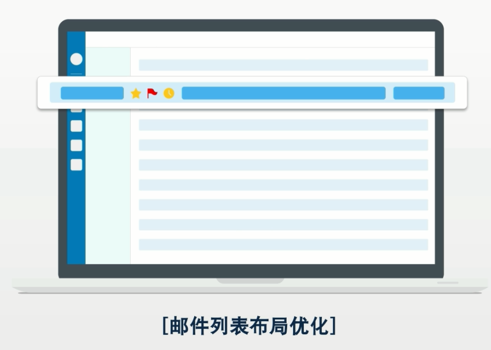 邮件列表显示布局优化,邮件元素重新排列,突出重点邮件。