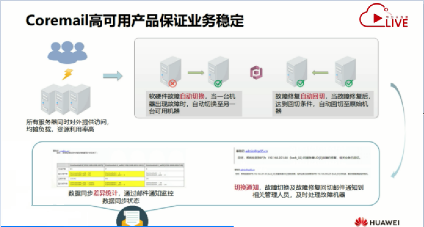 CoreMail本地多活部署在同一机房内,为解决软硬件故障而研发的产品,满足CoreMail邮件系统的大、中、小型客户需求。