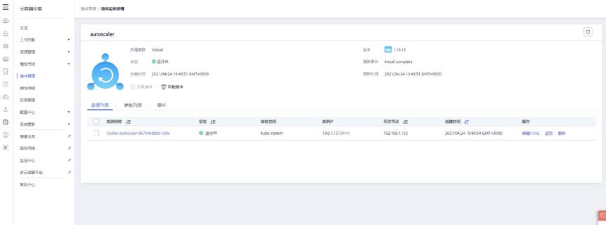 打开插件管理页面,找到 autoscaler 插件,点击安装插件。