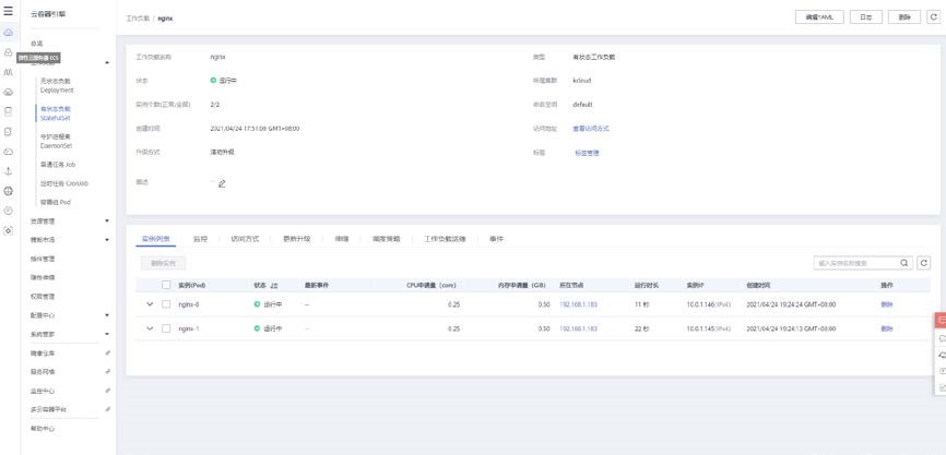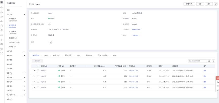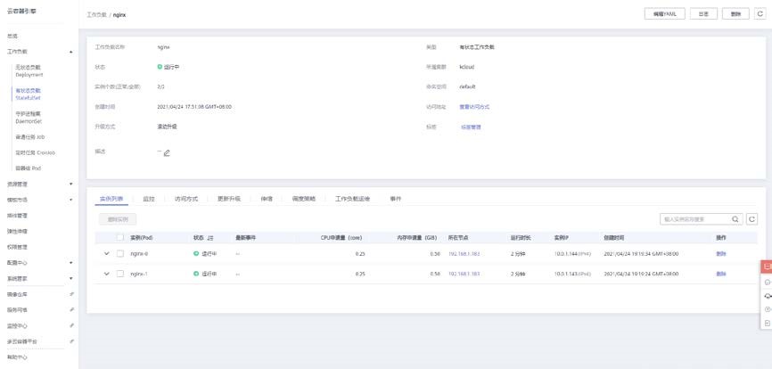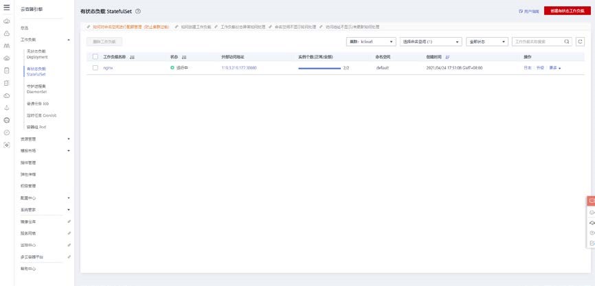 返回无状态负载控制台可以查看到所创建的工作负载信息。