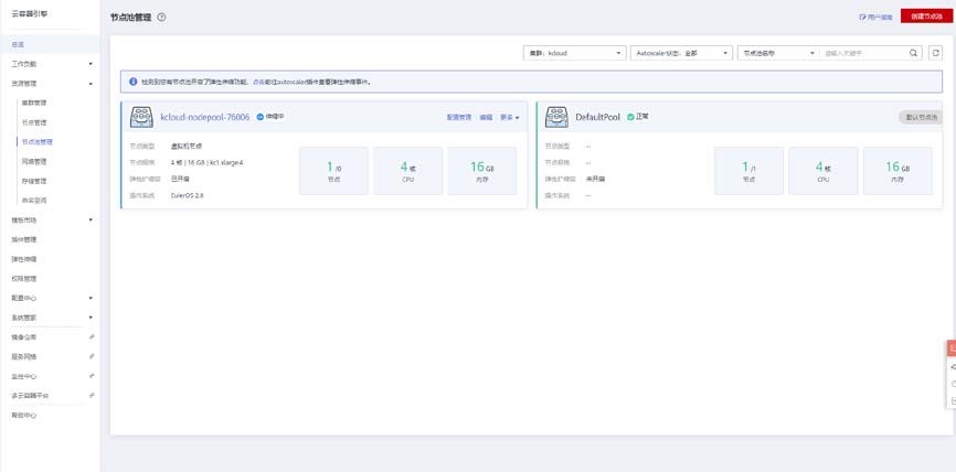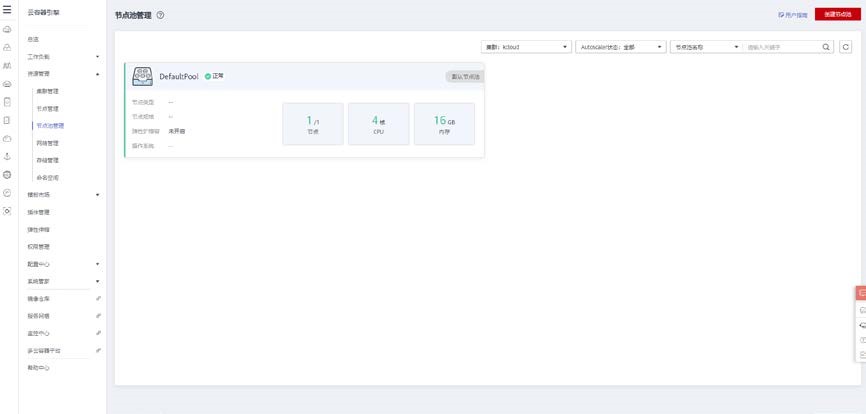 点击资源管理>节点池管理,创建节点池。