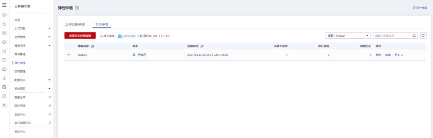 打开弹性伸缩控制台,创建节点伸缩策略。