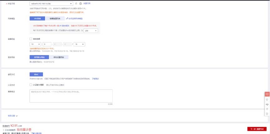 网段冲突即可。点击下一步创建节点。