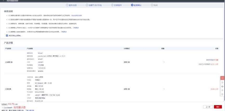 点击提交按钮即可完成配置创建鲲鹏容器集群。