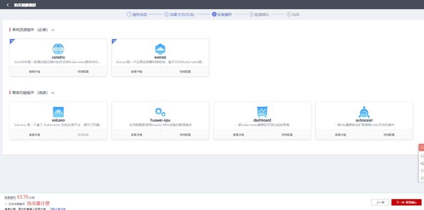 选择集群 kcloud 和支持鲲鹏集群插件版本 2.0.1。
