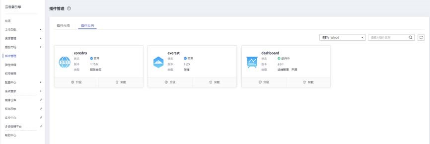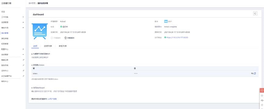 打开云容器引擎>插件管理,找到 dashboard 插件,点击下方的安装插件按钮,安装 dashboard 插件。