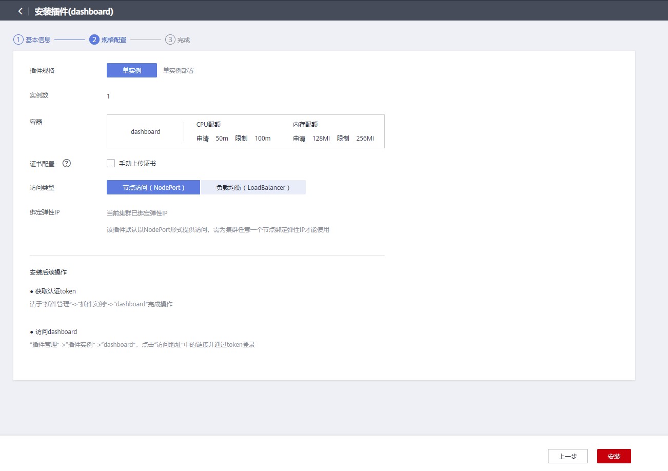 选择插件规格为单实例,点击安装。