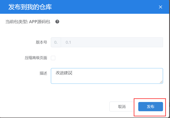 - 在AppCube上编译发布应用,将创建的应用编译发布到WeLink上。