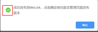 选择审核员,在“版本说明”中输入说明信息,如“第一次测试发布”,单击“确定”,提交发布应用申请给审核员审核。审核完成后,应用会发布至企业WeLink中。