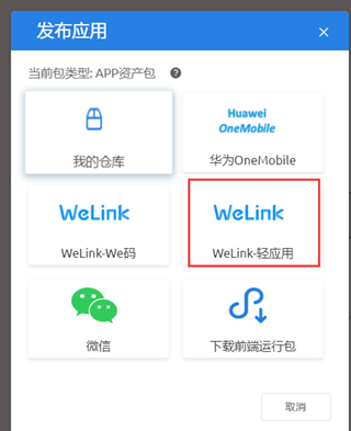 编译完成后,单击,选择“WeLink-轻应用”。