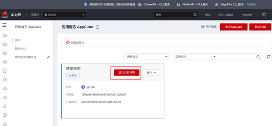 进入应用魔方首页:https://www.huaweicloud.cn/product/appcube.html。