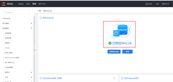 操作完成后,可看到已绑定WeLink提示。