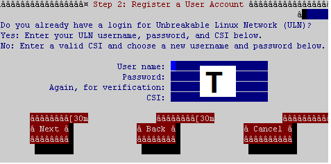 从命令行键入以下内容,这将调用“Unbreakable Linux Network Registration”向导,如下所示。