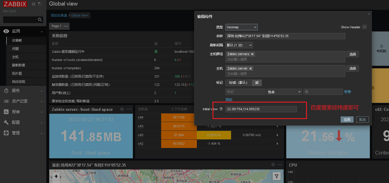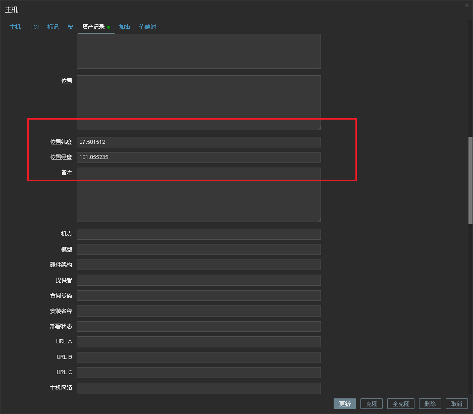 #自定义添加主机经纬度位置信息(配置-主机-资产记录)