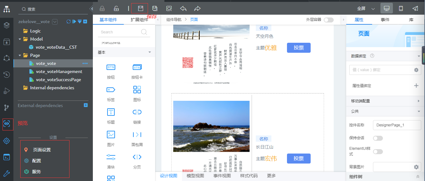 修改“投票页面”,修改图片和相关内容,设计成符合自己的产品名称的投票页面,点击“保存”,点击“预览”可以查看效果。