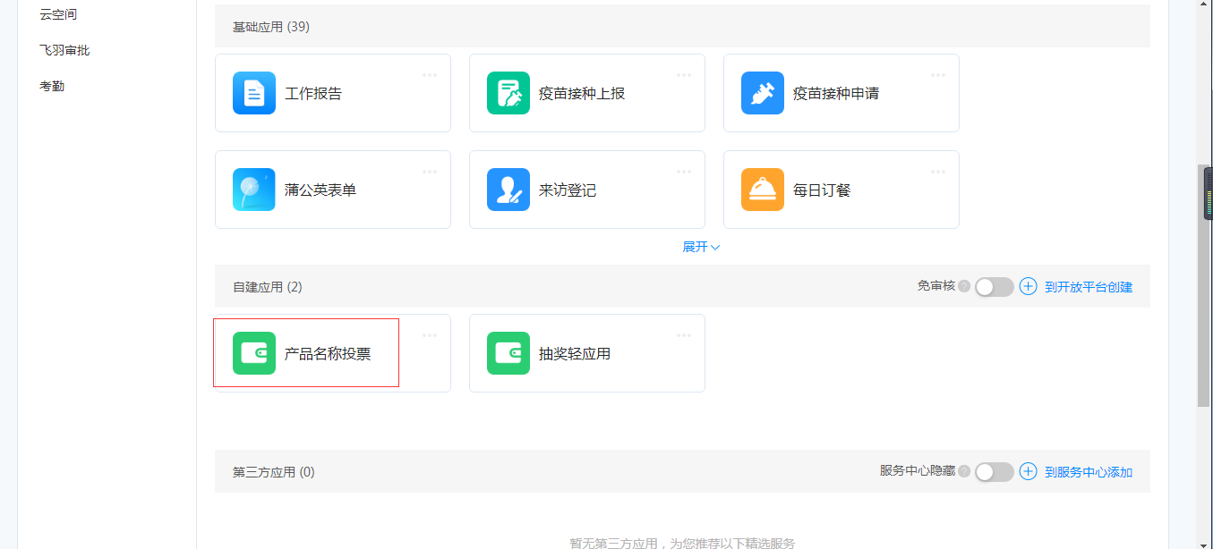在应用里面就可以看到发布的“产品名称投票”应用了。