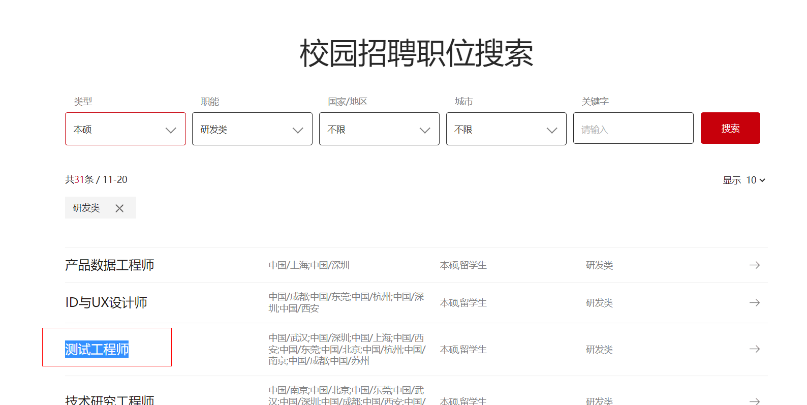 第二小步:职位选择:软件开发工程师 / 测试工程师