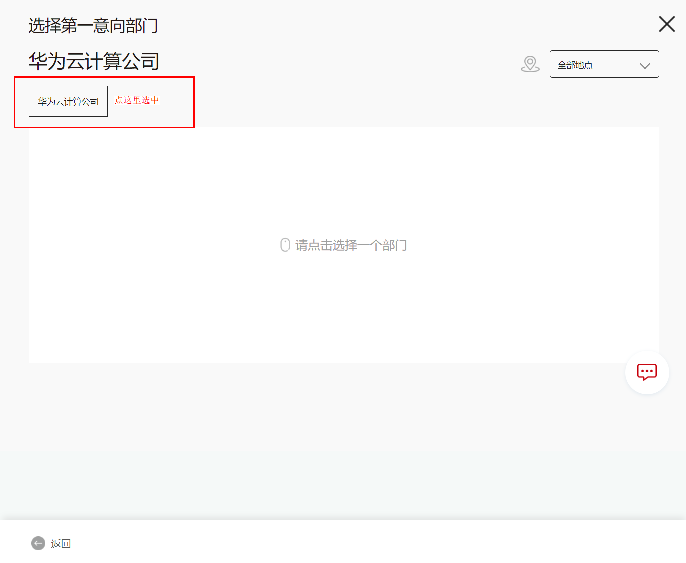 第四小步:往下滑,第一意向部门,选择华为云计算公司