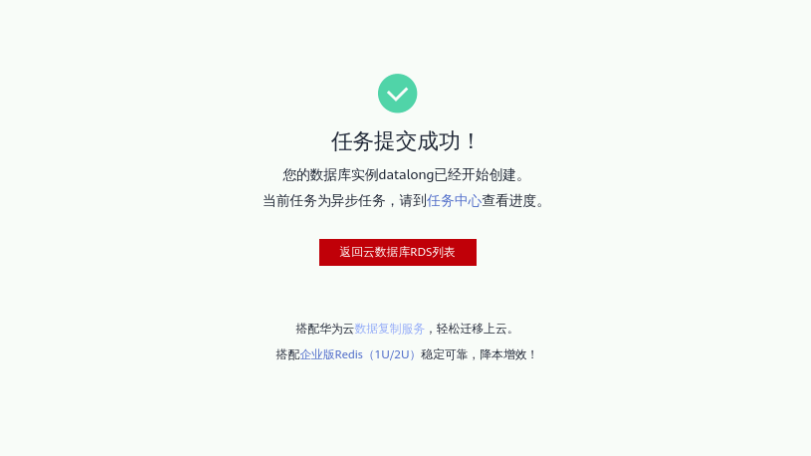 返回云数据库实例列表。当RDS实例运行状态为“正常”时,表示实例创建完成。