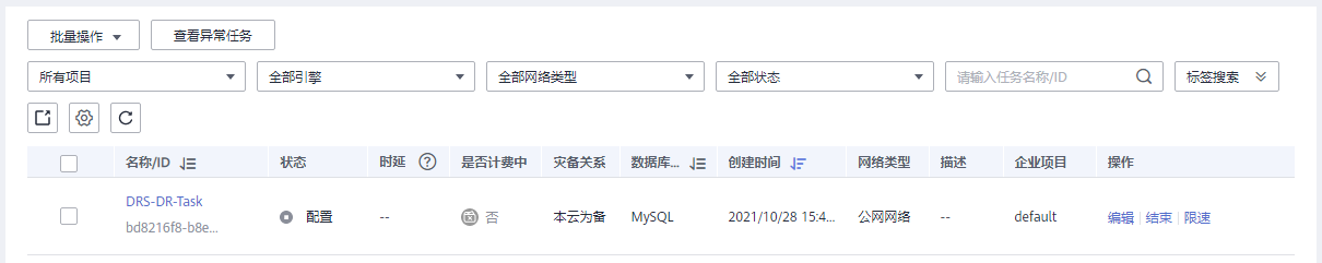 - 1 在“实时灾备管理”页面,选择已创建的灾备任务,单击“编辑”。