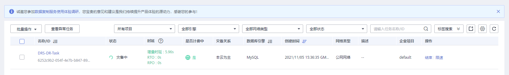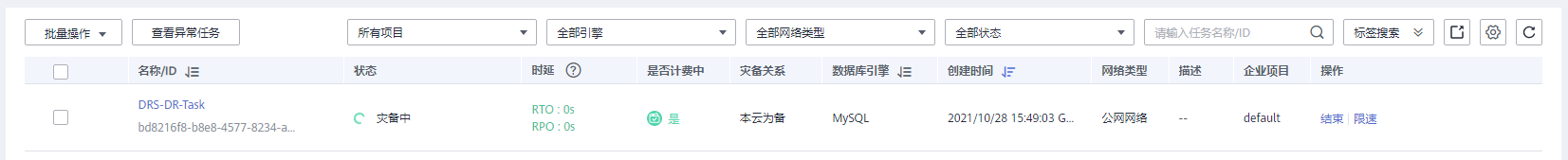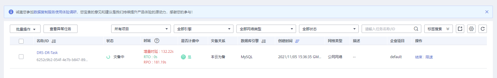 最后返回“实时灾备管理”页面,你就可以看到新创建的灾备实例了