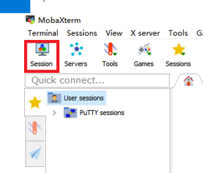 点击左上角的Session,选择SSH连接