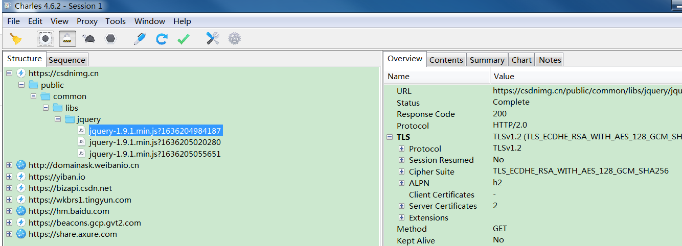 此时在使用浏览器访问任意网址(重点是 HTTPS 协议站点),当 Charles 中出现对应的请求并正常解析,表示配置成功。