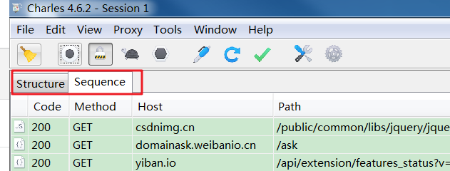 Structure视图:将网络请求按访问的域名分类;Sequence视图:将网络请求按访问的时间排序。