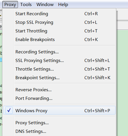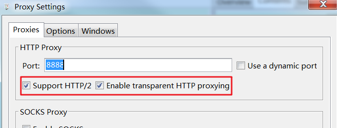 在菜单 Proxy 中找到 Proxy Settings,之后按照下图开启配置。