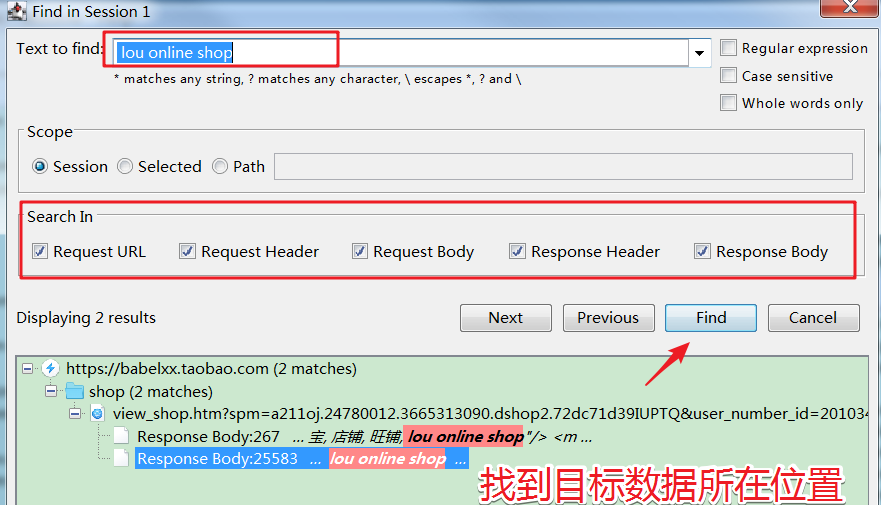 打开淘宝,随机进入一家店铺,会看到生成非常多的请求内容,然后按下键盘 Ctrl+F 进行检索,可以找到对应的数据接口。
