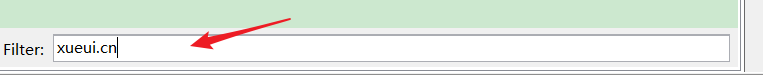 接下来我们拿指定的网站练练手,这一次选择 学 UI 网,打开 Charles,注意软件的左下角,有一个 Filter 输入框,在其中输入 xueui.cn 域名即可。
