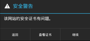 打开模拟器默认浏览器,出现证书问题,在手机浏览器中访问 http://charlesproxy.com/getssl 下载证书并安装。