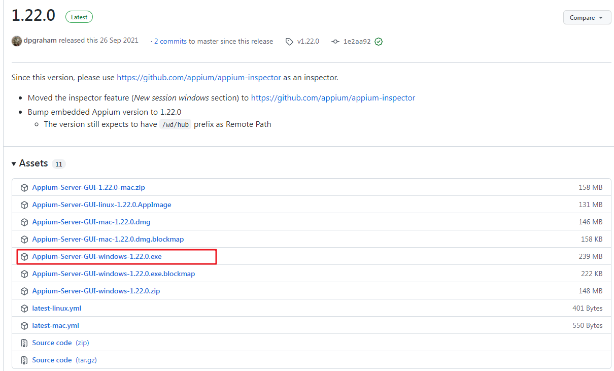 Appium-Desktop(最新版的叫做 Appium Server GUI) 下载地址:v1.22.0