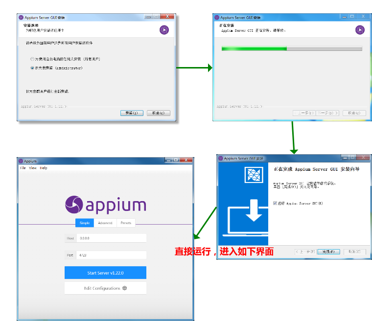 再次启动安装包,就进入了 Appium Server GUI 安装目录,再接下来竟然直接安装成功了(与数年前果然不一样了)